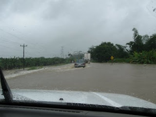 We returned from the Pacific coast to a big storm. Rain lashing down overflowing the rivers and the roads, causing landslides and power outages. Not so much fun to drive through. Some places were hard to pass but we finally made it home to find the house wet and even the bed damp. That's the problem with having no walls. We are all of us huddled into the computer room, 4 dogs and two humans steaming gently with cups of tea and warm doggy dinners. It's good to be home.