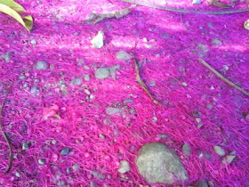 These are petals from the Manzana de agua blossoms, covering the ground. Not so much like fallen apple blossoms from further north, but just as beautiful . . .