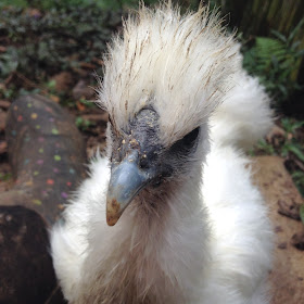 We have a couple of hawks with regular perches close by: the chickens are all too big I think, but the smallest silkie is just a little smaller than the hawk and bright white. The hawks are really vocal and call back and forth to each other, so there's no secret to their whereabouts. One day someone gave a warning cry and the smallest white silkie - Madame Twankey - took off straight into the long grass and crouched down. She was the only one to do so. It was a false alarm and everyone returned to their business, though Madame Twankey had to be called back out of her hiding spot. Was the alarm call addressed to her, or does she actually really know she's the only one in possible danger (her attitude in the coop seems to indicate she thinks she's just as big as the rest)?